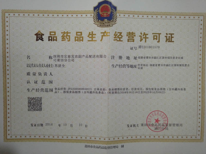 深圳市宏泰發(fā)農(nóng)副產(chǎn)品配送有限公司莆田分公司是一家專業(yè)從事于農(nóng)產(chǎn)品配送和飯?zhí)贸邪姆?wù)公司,主要客戶為工廠、酒樓、學(xué)校和企事業(yè)機(jī)關(guān)單位。